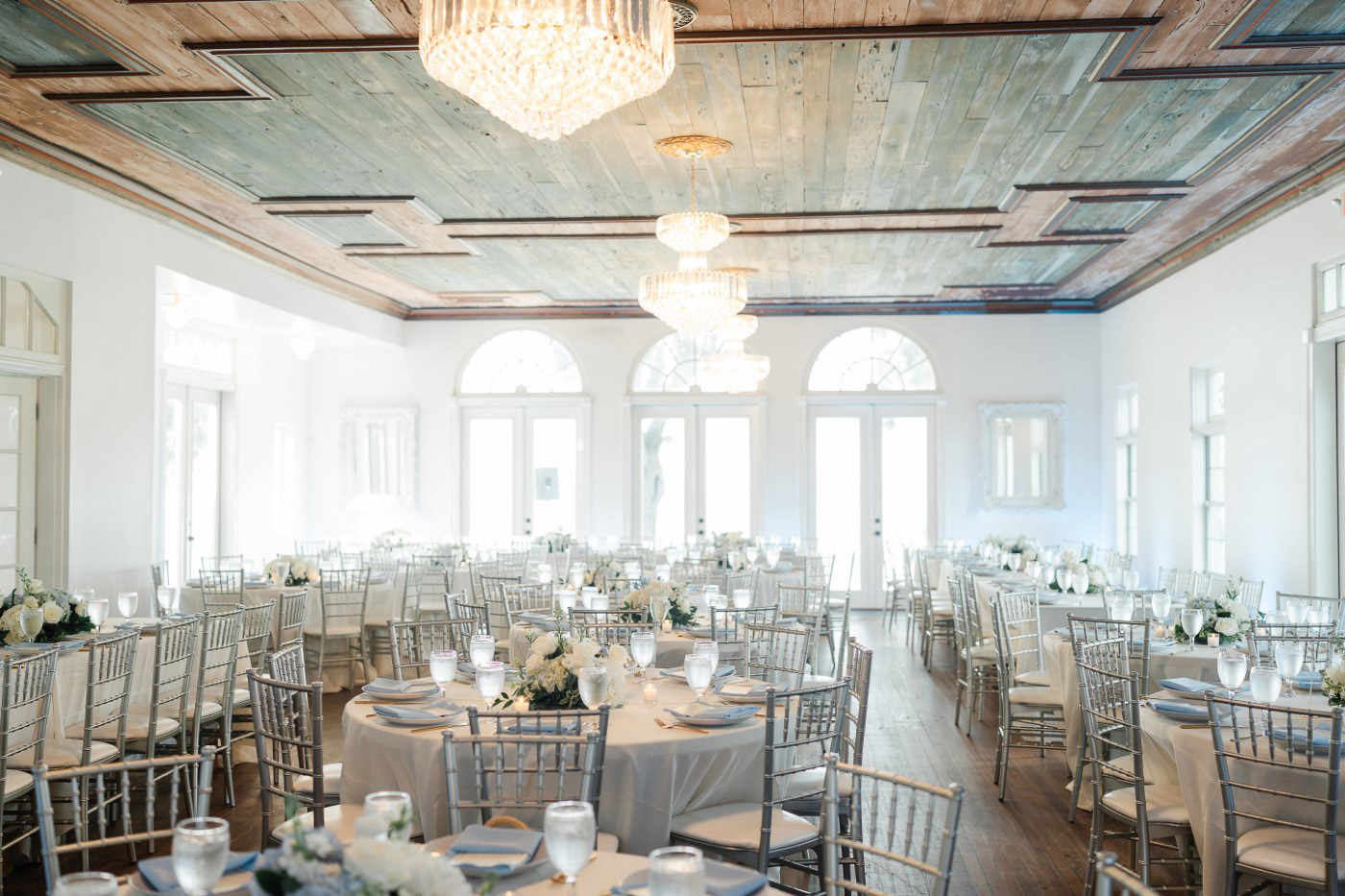 After your vows, The Ballroom becomes the heart of the celebration. Crystal chandeliers sparkle above elegant tables, while natural light pours through grand arched doors overlooking the lake. With space for up to 150 guests to dine, toast, and dance the night away, it delivers a seamless transition from ceremony to party.